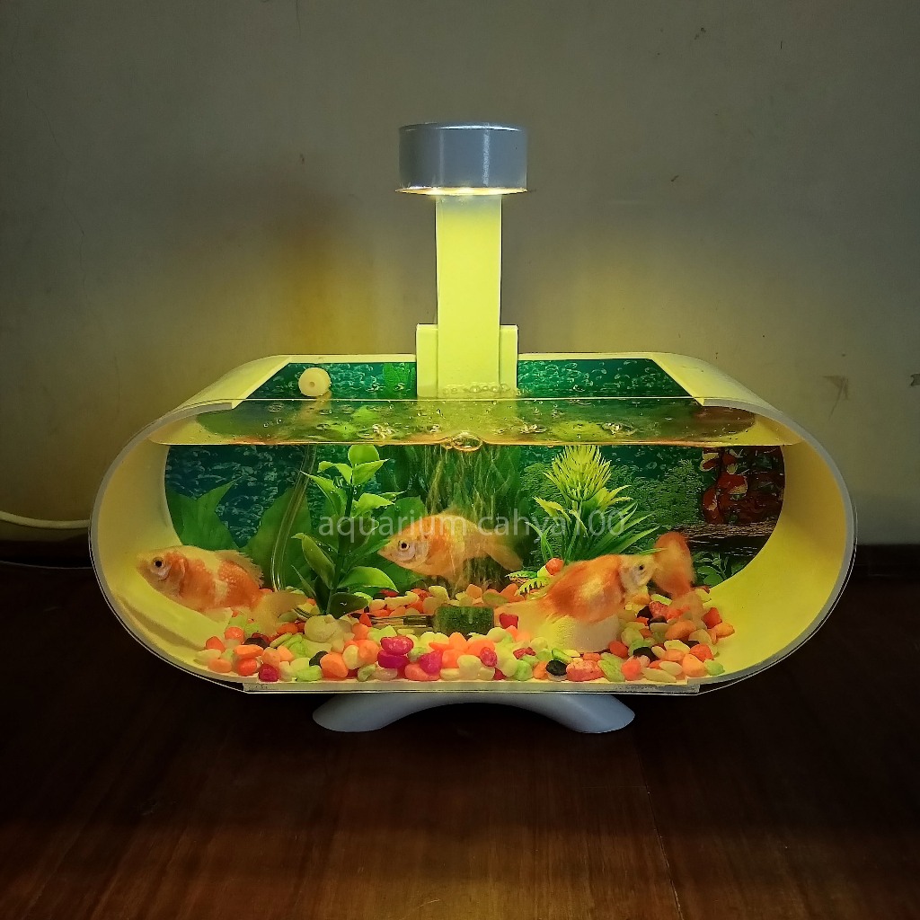 Aquarium Mini Akrilik Minimalis Fullset Plus Mesin Aerator Oxygen Gelembung Dan Lampu