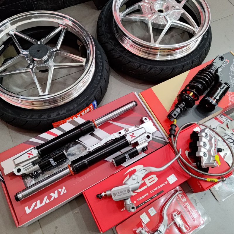 Paketan Full Set lengkap master rem RCB E3 Kanan kiri 14mm + Kaliper RCB 2 Piston + Selang rem 90cm + Disc +Shockbreaker