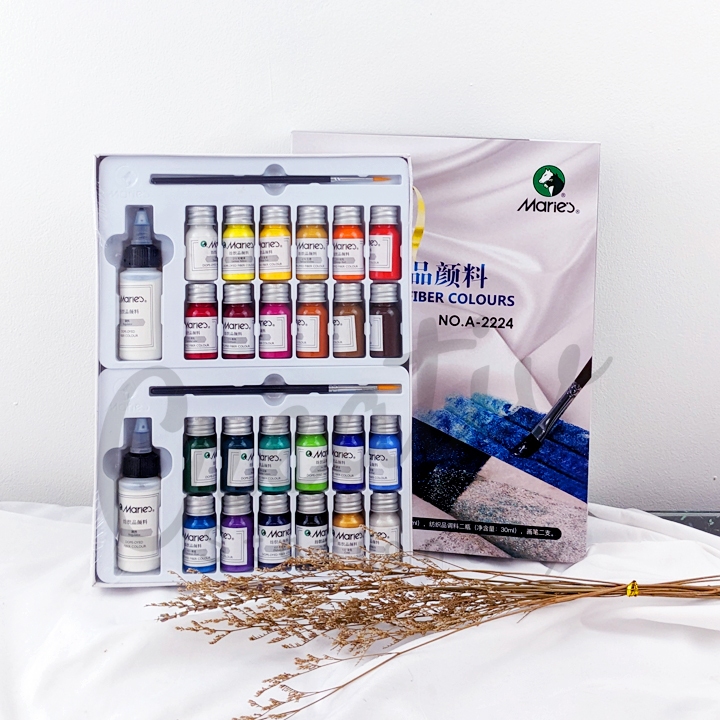 MARIES Fabric Paint 24 Color Set Cat Kain Warna