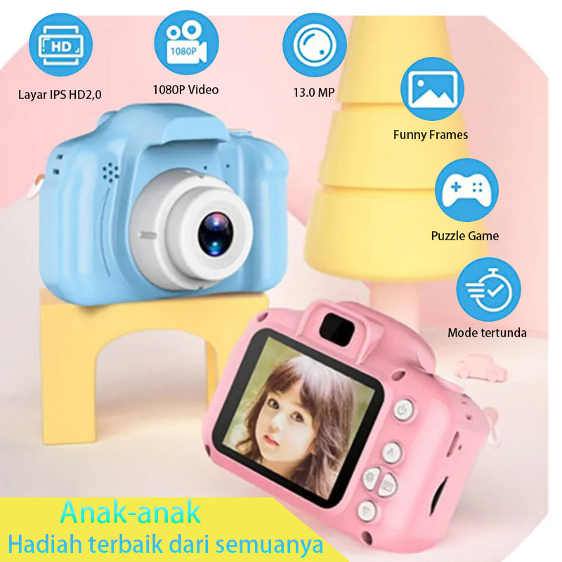 KepoGadget Kamera Anak Mini 1080p Hadiah Anak SD Multifungsi Digital untuk USB 2.0 Baterai 600mAh