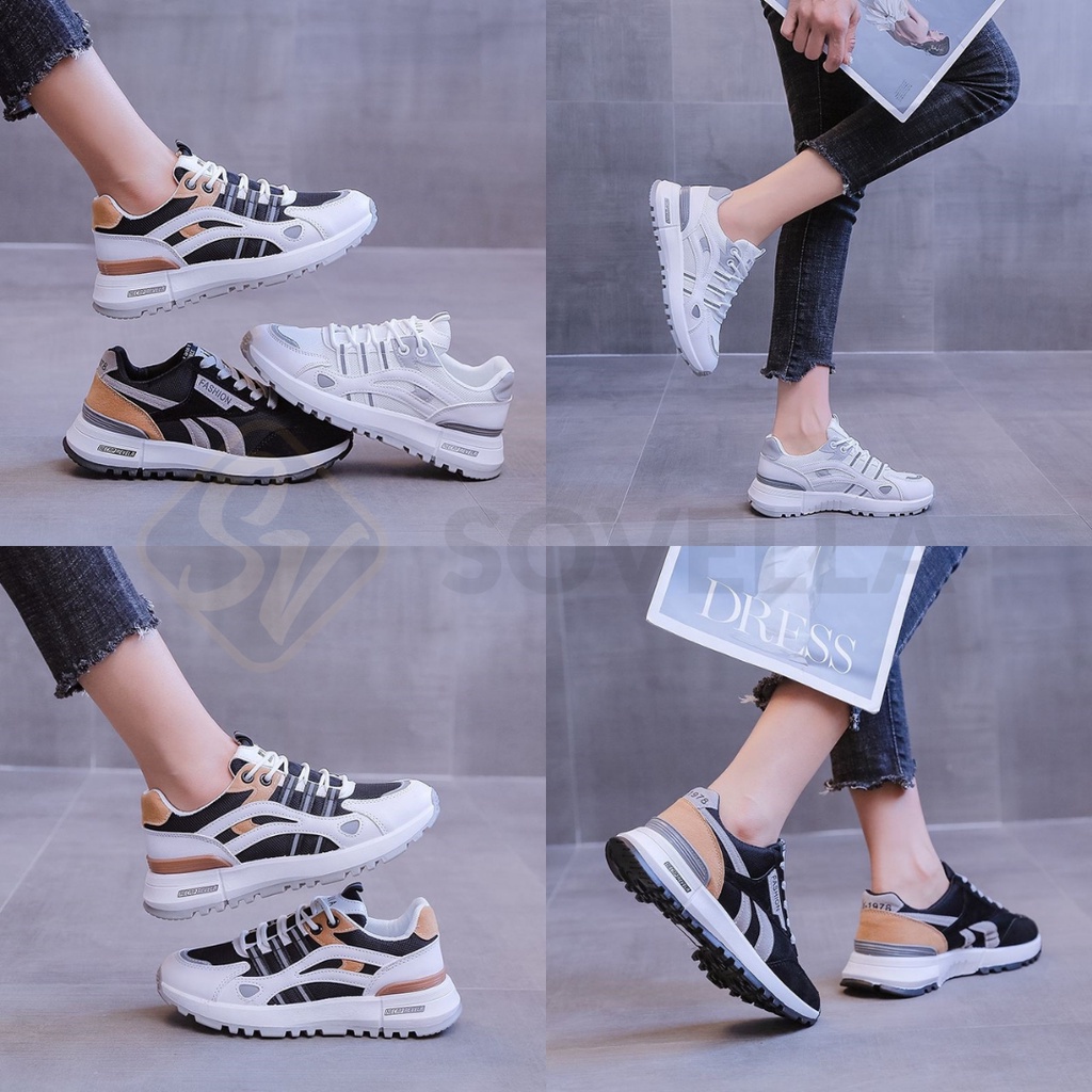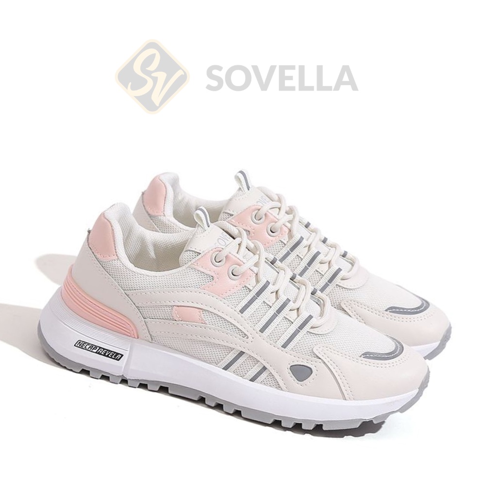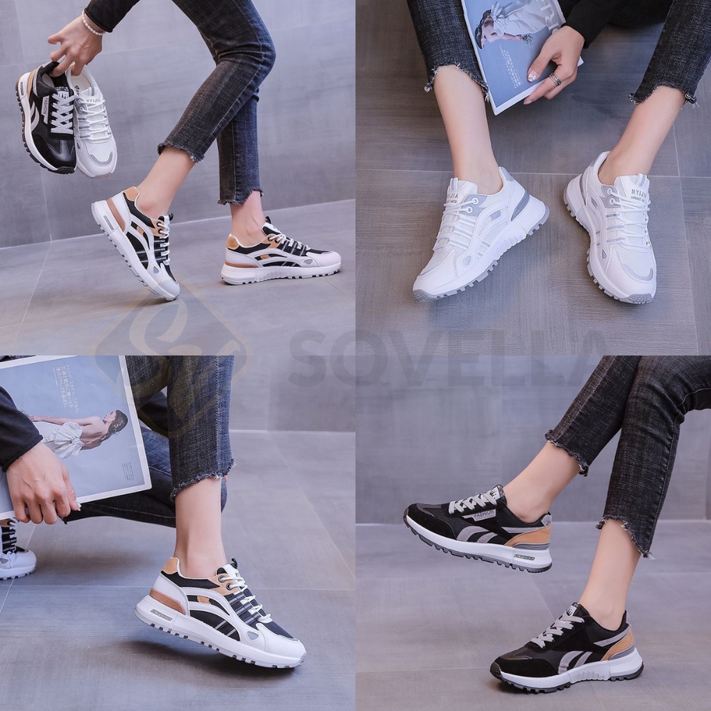 SOVELLA Halona Sepatu Sneakers Wanita Sport Olahraga Putih Hitam