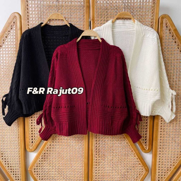 Outer F&R Kemani Knitwear Lucu - Atasan Cardigan Rajut Crop Batwing Wanita Motif Lengan Pita Cable Balon Kekinian Korea