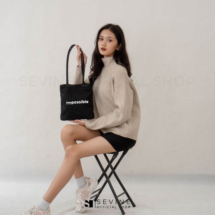 Sevine Anya Black Shoulder Bag Tas Bahu Tote Bag Cewek Wanita Totebag Simpel Elegan - BYI