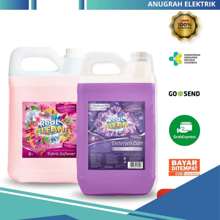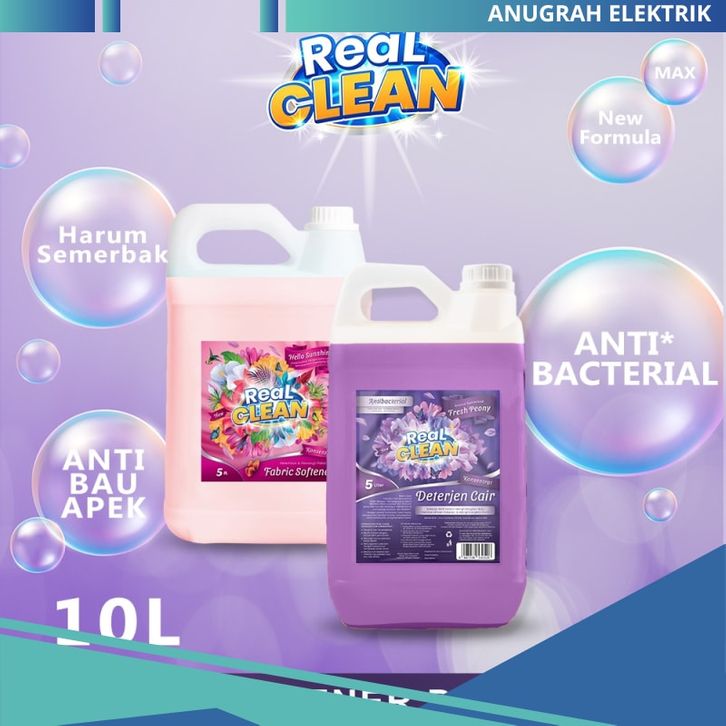 Real Clean Deterjen Cair laundry & Softener Cair PAKET HEMAT 10 Liter Sabun Cuci Pakaian & Pengharum Pelembut Pakaian