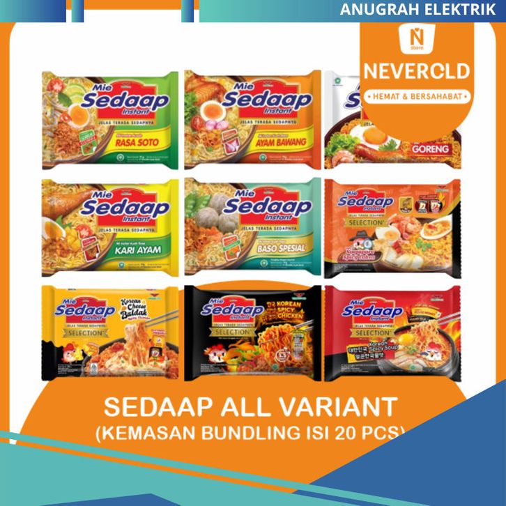 SEDAAP AYAM BAWANG, SEDAAP BASO SPESIAL, SEDAAP CHEESE BULDAK, SEDAAP GORENG, SEDAAP GR KOREAN, SEDAAP KARI, SEDAAP KARI SPESIAL, SEDAAP LAKSA SGPORE, SEDAAP SOTO, SEDAAP SPICY SOUP, SEDAP MIX REQUEST
