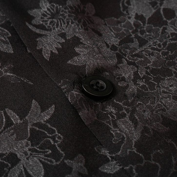 COOLCOOL Flower Jacquard Embroidery Black Loose Short Sleeve Men's Casual Shirt BY ORIGINAL PRODUCT