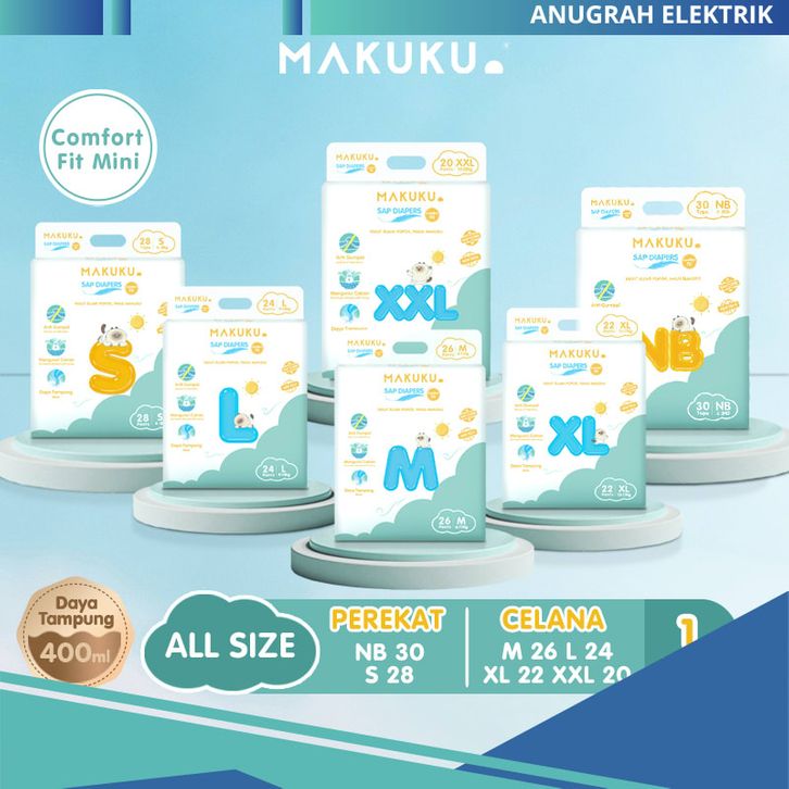 [1 PACK] MAKUKU SAP Diapers Comfort Fit Pants/Tape NB/S/M/L/XL/XXL Popok Bayi Tipis Extra Dry Anti Gumpal Mengunci