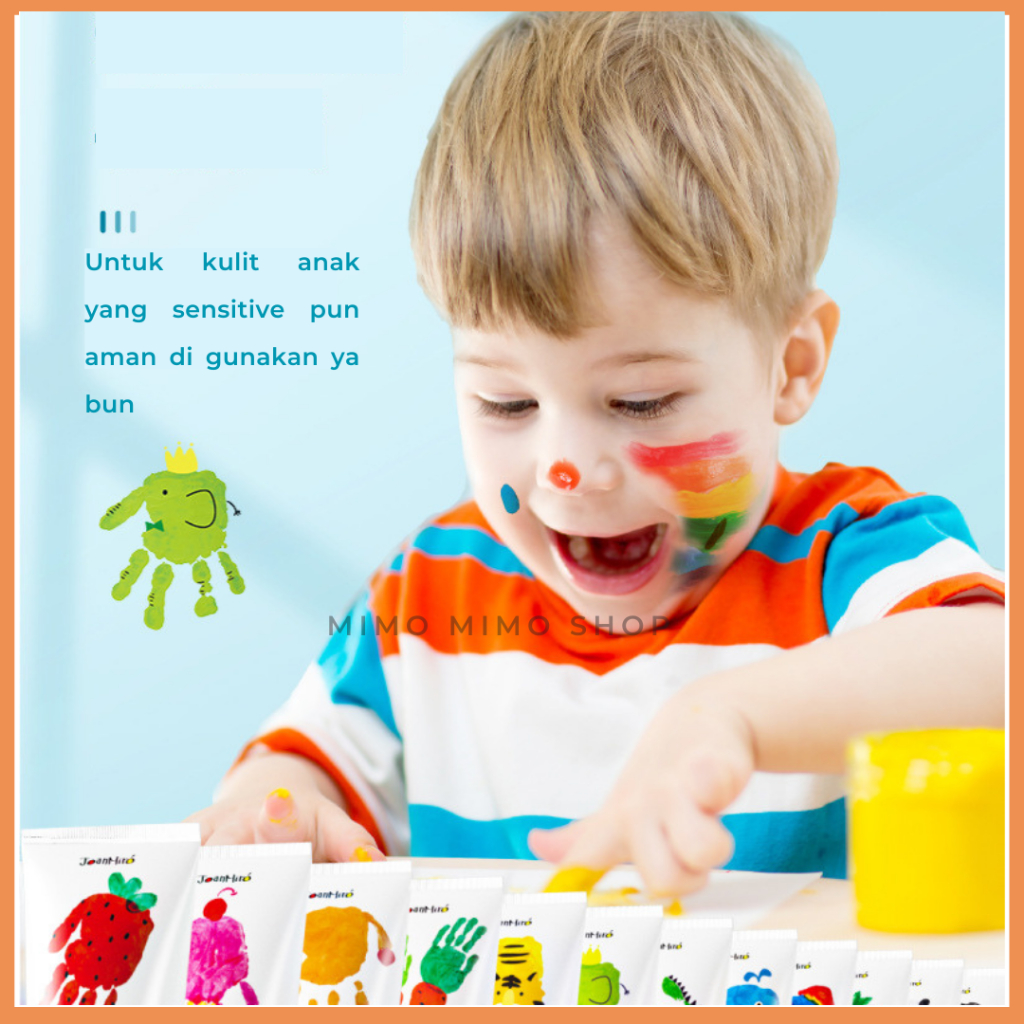 MIMOKIDS WASHABLE FINGER PAINT SET 6 COLOR 12 COLOR NON TOXIC HAND PAINTING JOANMIRO CAT TANGAN AMAN