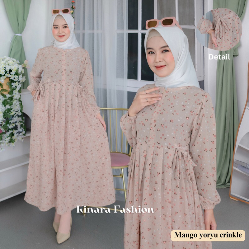 Natalia Dress Gamis Busui Bahan Yoryu Crinkle Motif Bunga Kecil Dewasa Remaja