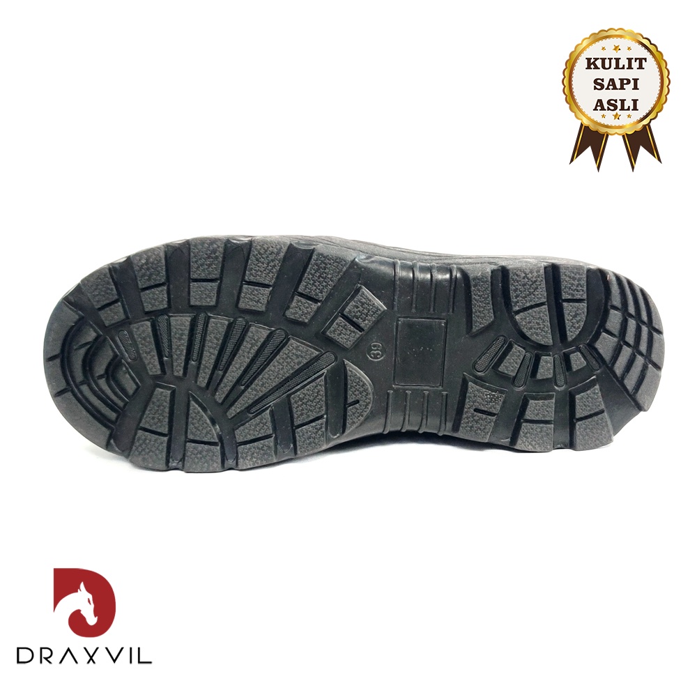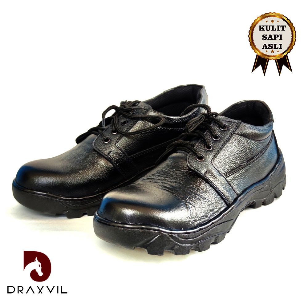 Draxvil - Sepatu Safety Kulit Sapi Asli Ujung Besi Tali Pendek