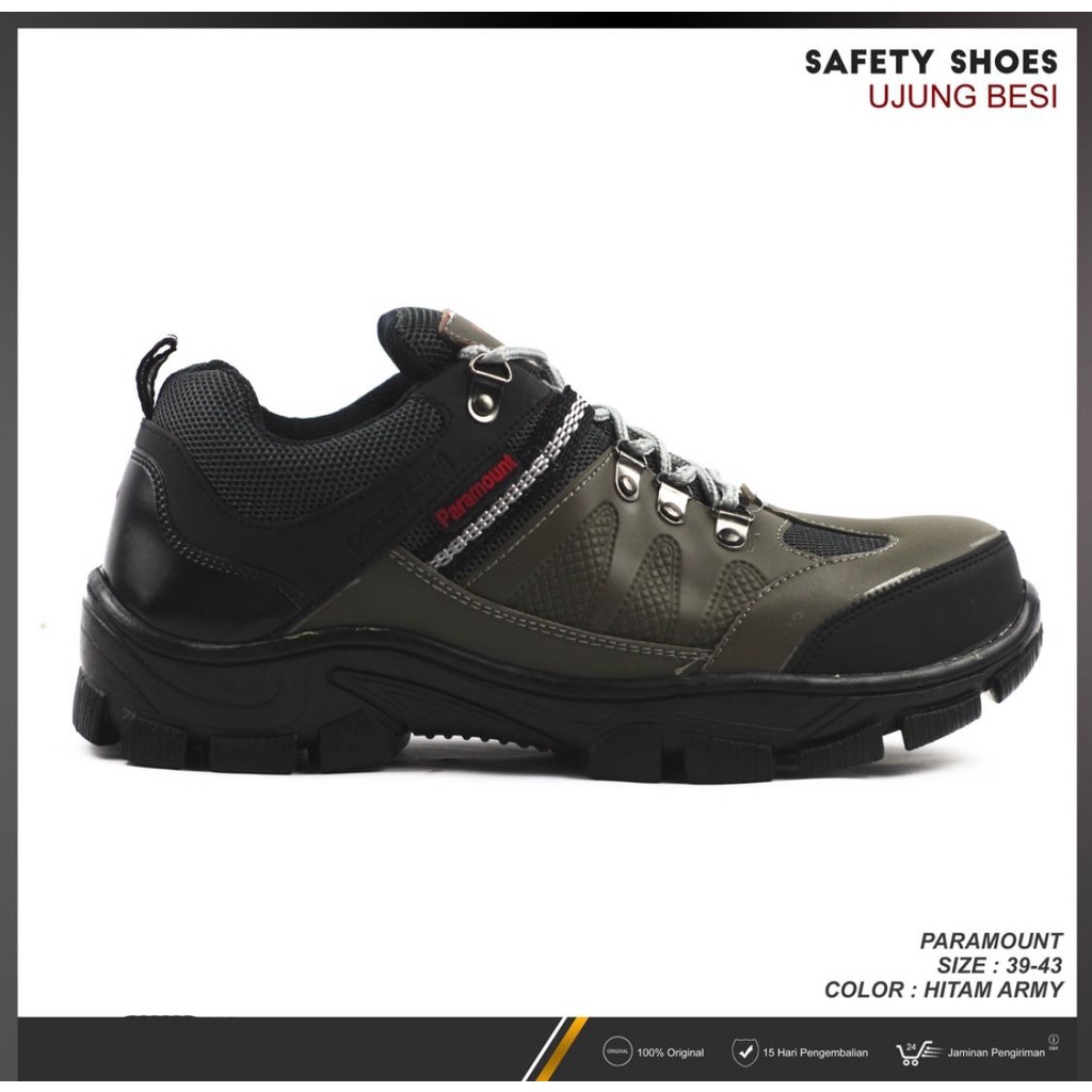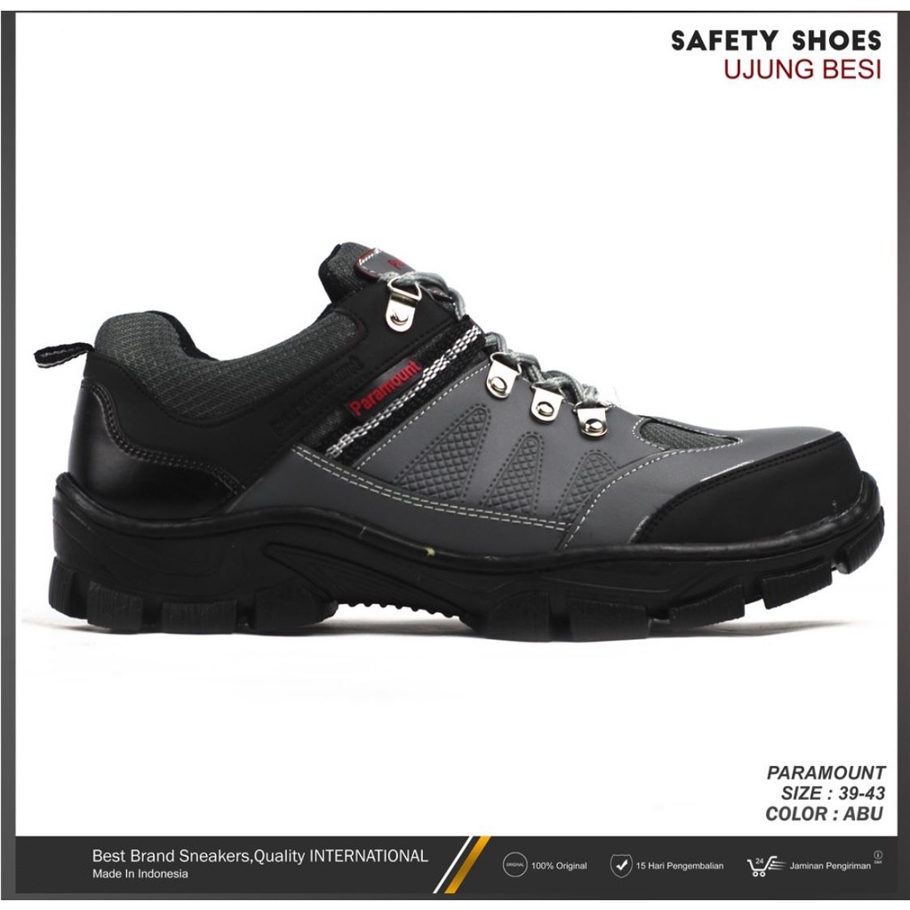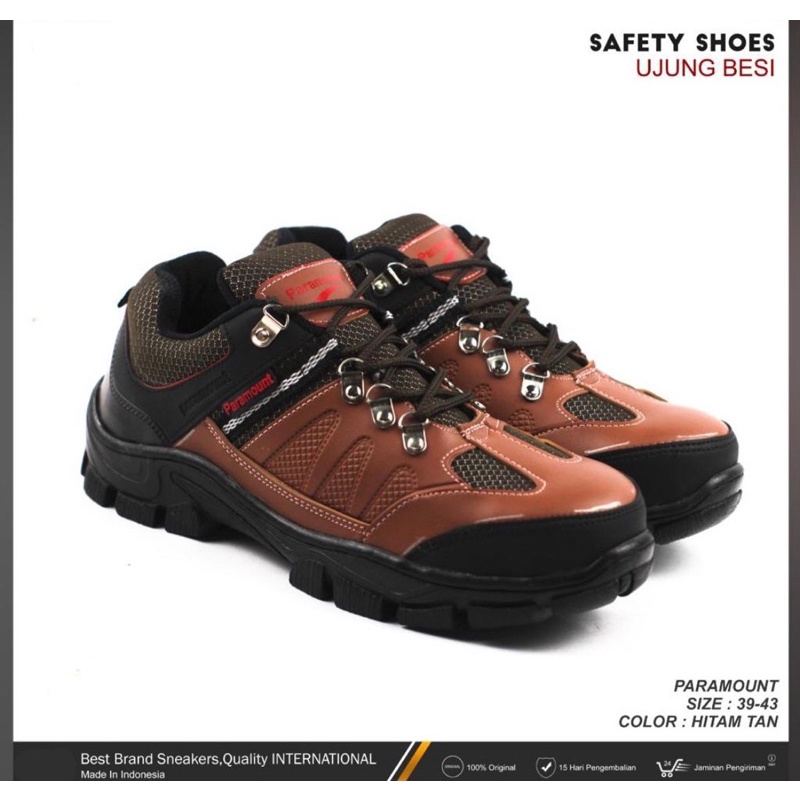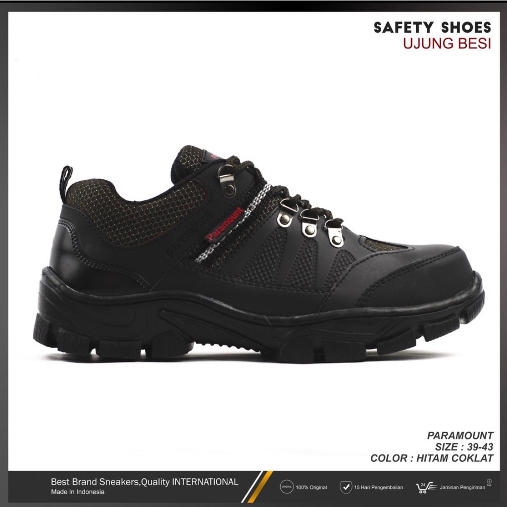 Sepatu Safety Ujung Besi Paramount // Sepatu Kerja Lapangan Proyek // Sepatu Pria Keren // Sepatu Kulit Pria Hiking 100%