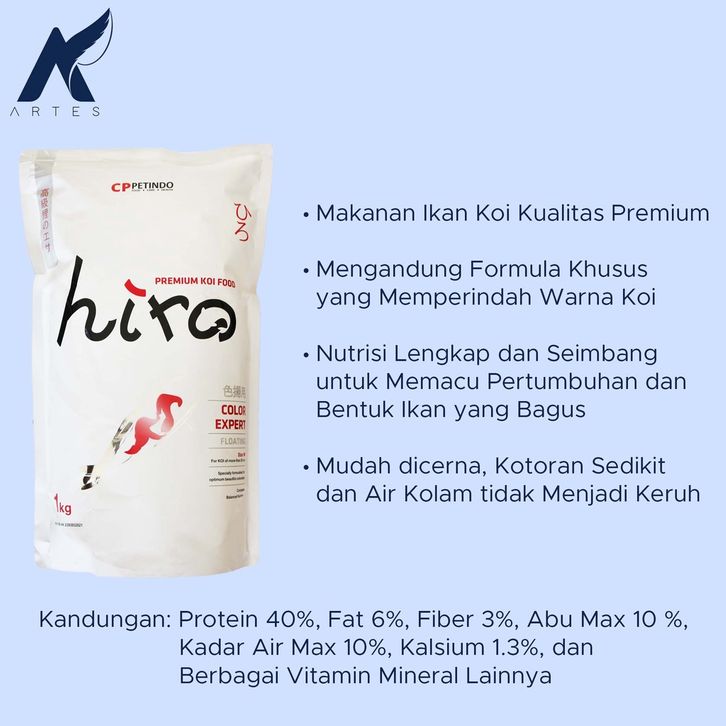 HIRO PREMIUM KOI FOOD COLOR EXPERT Pelet-Pakan-Pellet-Makanan Ikan Koi M 5 mm Floating 1 kg-kilo