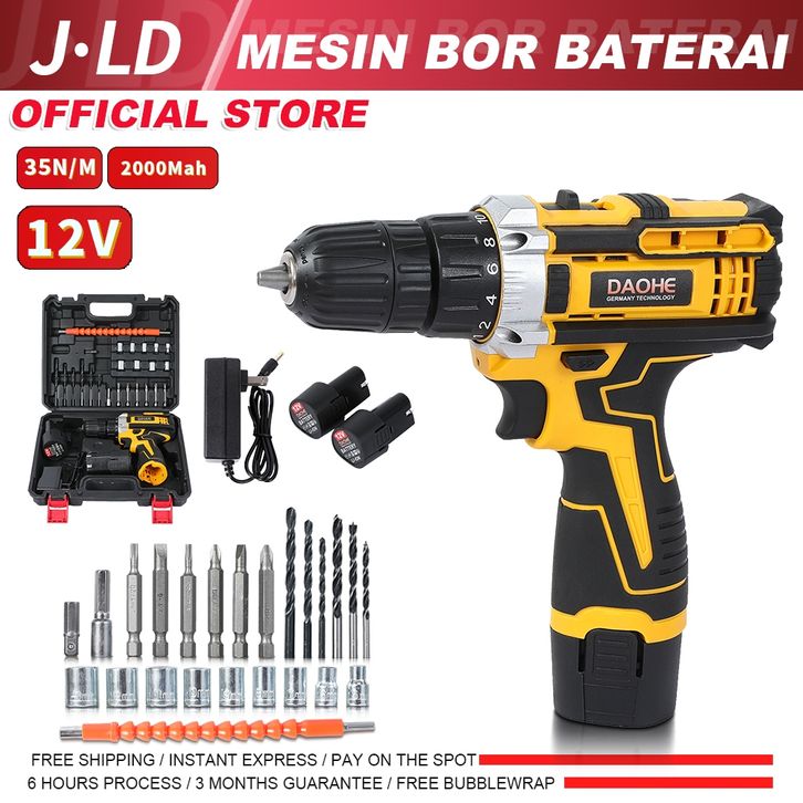 DAOHE Mesin bor baterai 36VF set bor cas 25+3 Cordless Impact Lengkap 2 Baterai Fullset Koper