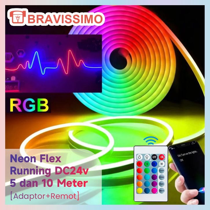 LED NEON FLEX.RUNNING DC24V NAMA APK RHYTHM PRO .PAKET LED NEON FLEX RGB RUNNING 5M SENSOR