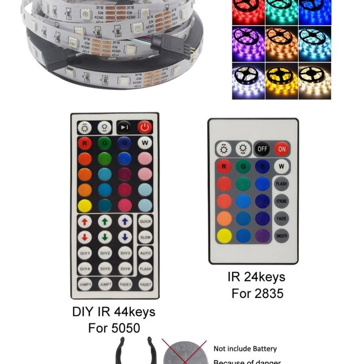 TIMIMALL LAMPU LED STRIP RGB Warna Warni 2835/5050 Komplit Set Adaptor Remote WATEROOF