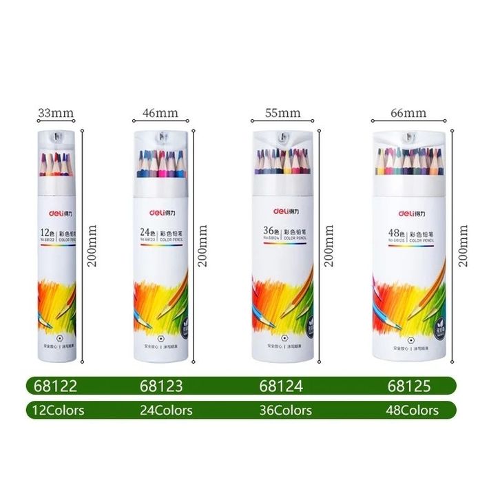 Deli Pensil Warna Heksagonal 12/24/36/48 Dengan Serutan