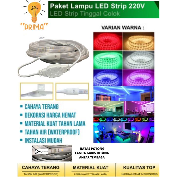 LAMPU LED STRIP SELANG 5050 SMD PAKET 15M + 1 SOKET + TUTUP SUDAH DI BANTU SAMBUNGKAN WATEROFF AC