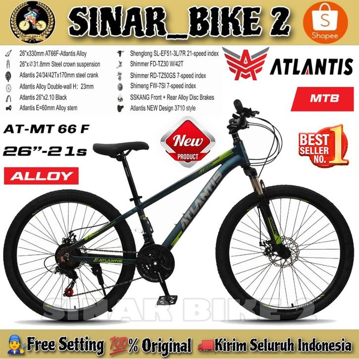 Sepeda Gunung MTB ATLANTIS 66F Alloy Alumunium Ukuran 26 Inch 21 Speed Rem Cakram