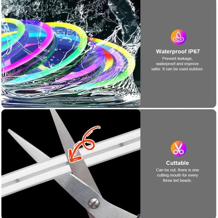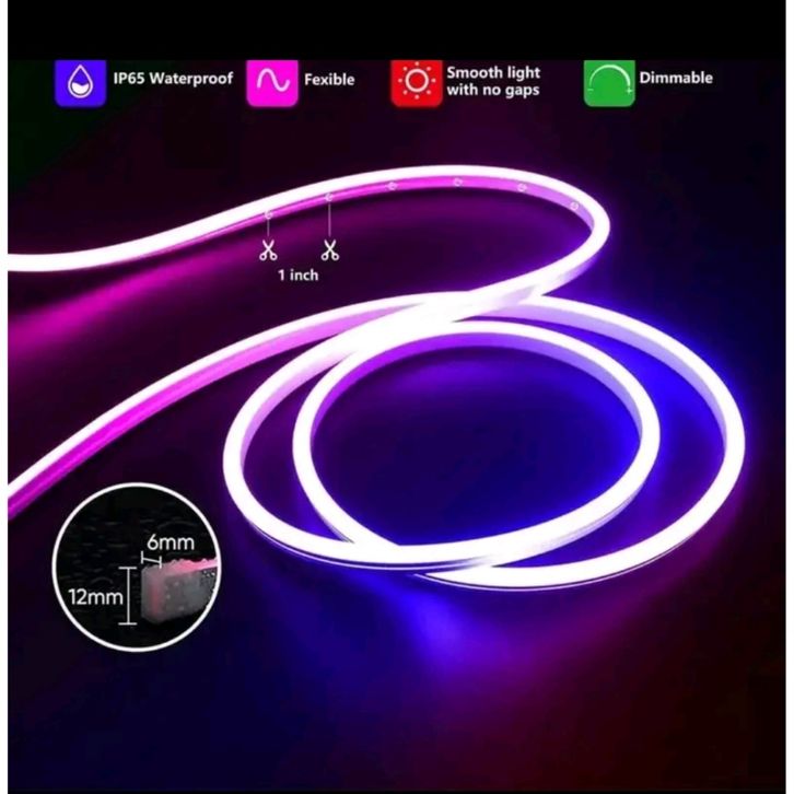 Paket LED Neon Flex Running RGB 5m 5 meter DC 12V/24V Sensor Bluetooth Suara + App Control + Adaptor
