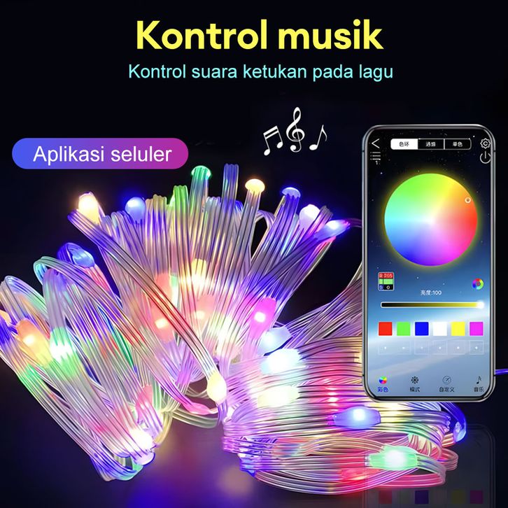 Smart LED Fairy Strip Lht Running Kontrol Suara Lampu Tali 10M Sensor Music Bluetooth Remote RGB