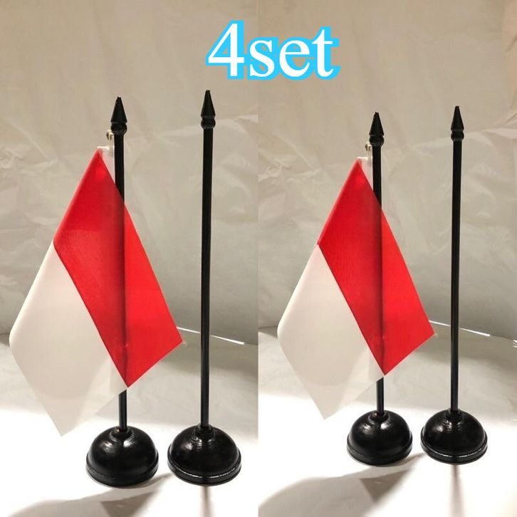 4 Pcs Set Bendera Merah Putih Indonesia + Tiang Meja Untuk Kantor/Meja Kerja