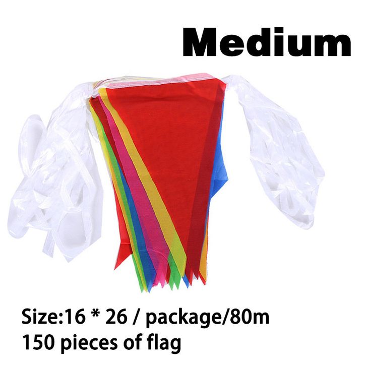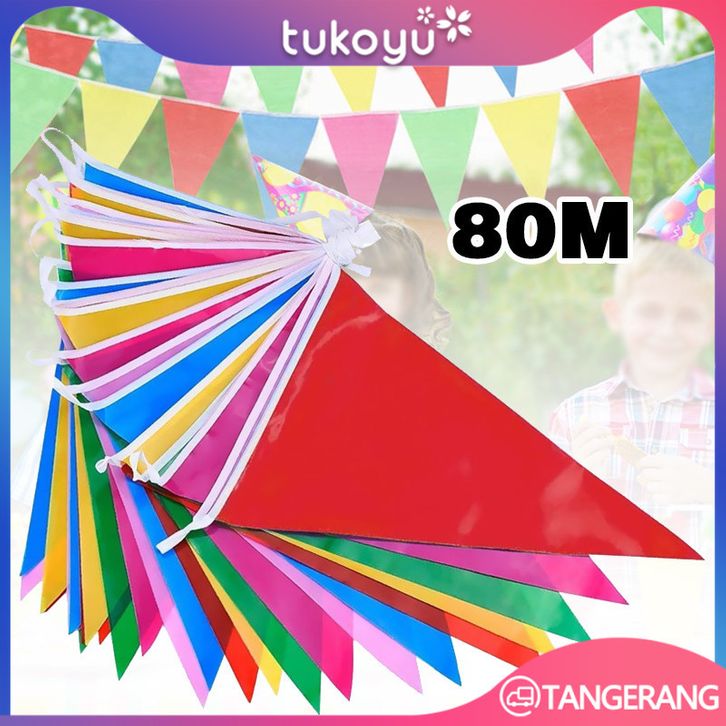 150Pcs Bendera Segita Warna-Warni 80 Meter Panjang Bendera Kain Cerah Untuk Dekorasi Pesta Karnaval