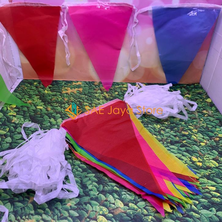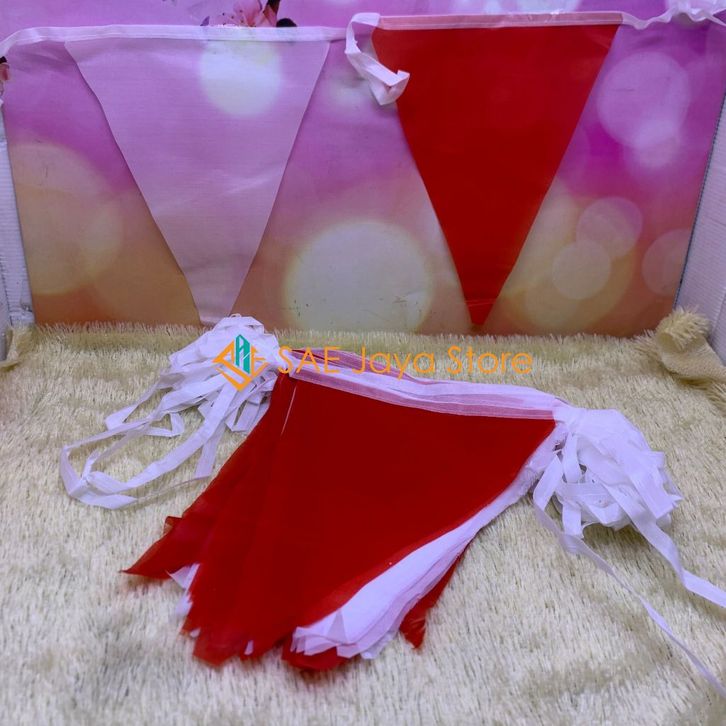 75 PCS SAE-BENDERA KAIN SEGITA MERAH PUTIH DAN WARNA CAMPUR ISI 75 PCS / BENDERA DEKORASI 17 AN