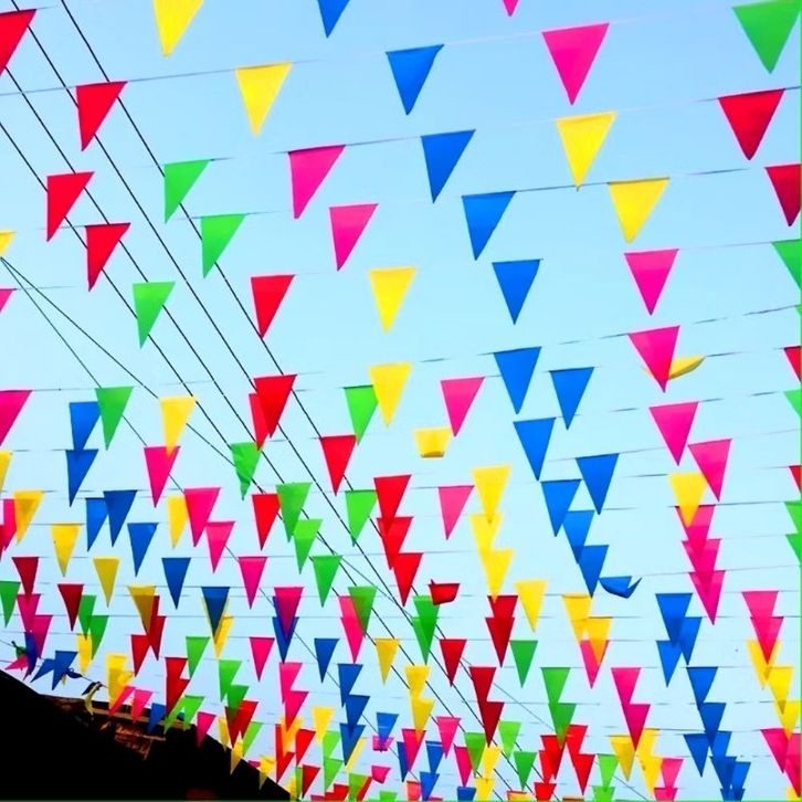 80 Meter 150pcs Bendera Segita Warna Warni Dekorasi Outdoor Dekorasi Indoor Hias Festival