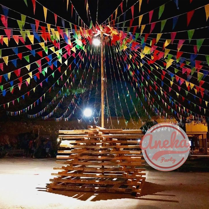 isi 10 Bendera Segita Kain Warna-Warni / Flag Party / Bendera Segita kain polyester / bendera