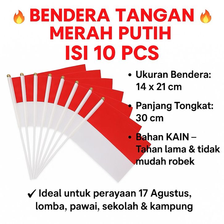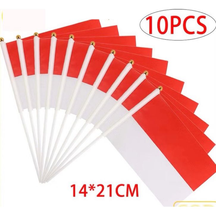 10 PCS Bendera Tangan Merah Putih ukuran 21 x 14 cm termasuk tangkai