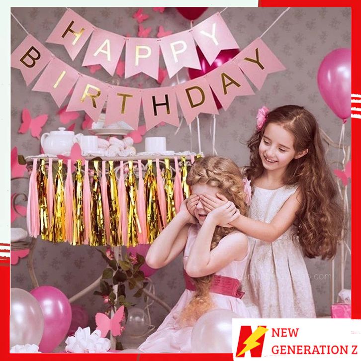 NGZ Banner Happy Birthday Warna Warni Backdrop Pesta Bendera Bunting Ultah Segilima Banner Tulisan