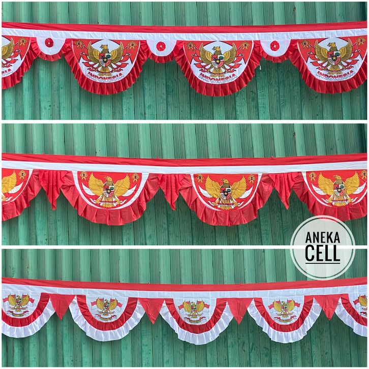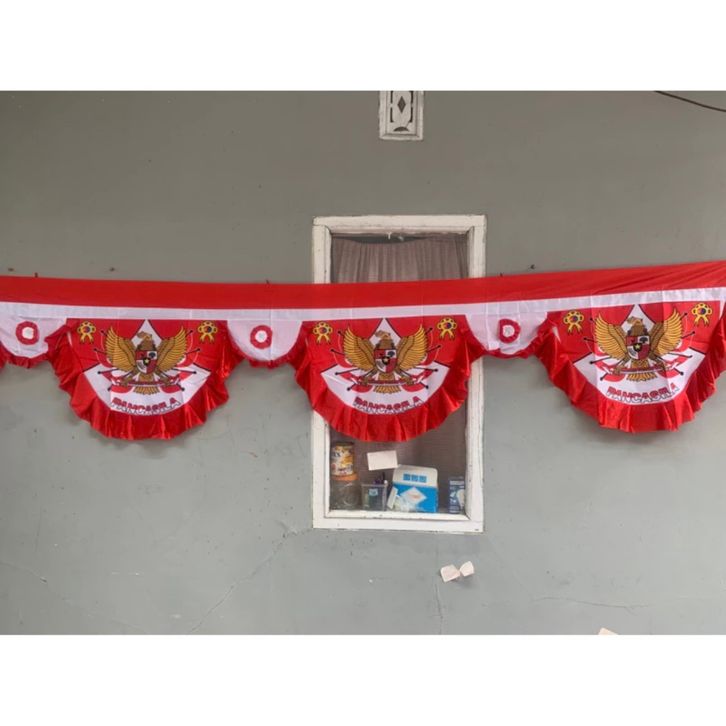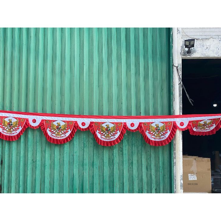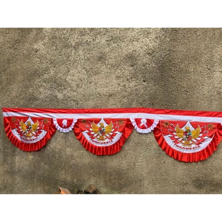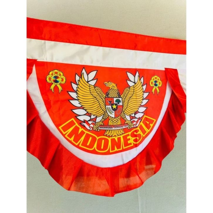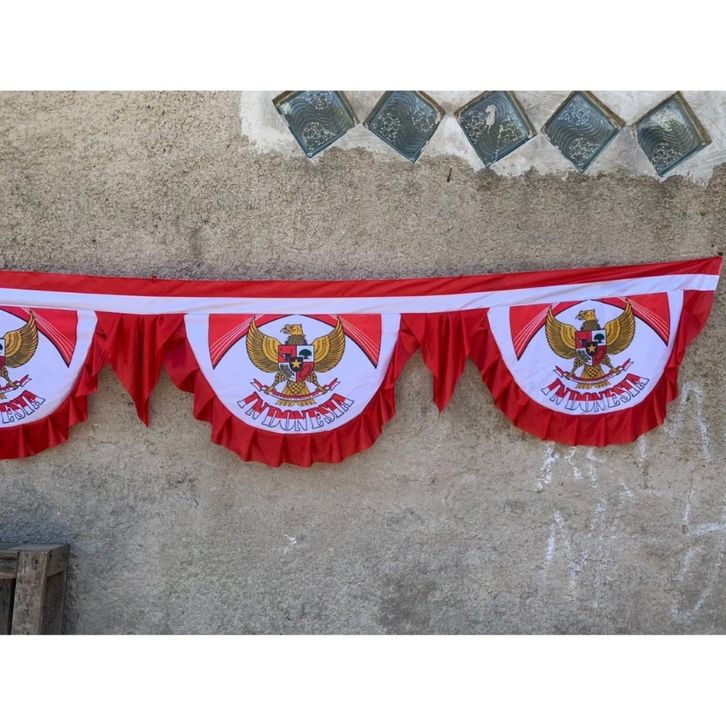 METER Bendera Background Merah Putih 5 Gelombang / Bendera Bekron Garuda 17 Agustus Hiasan Dekorasi
