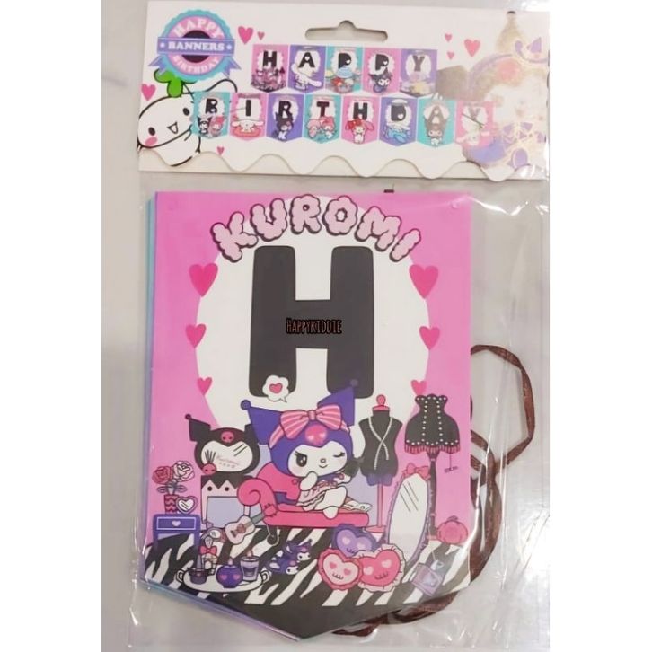 Banner Flag Karakter Kuromi Melody Happy Birthday
