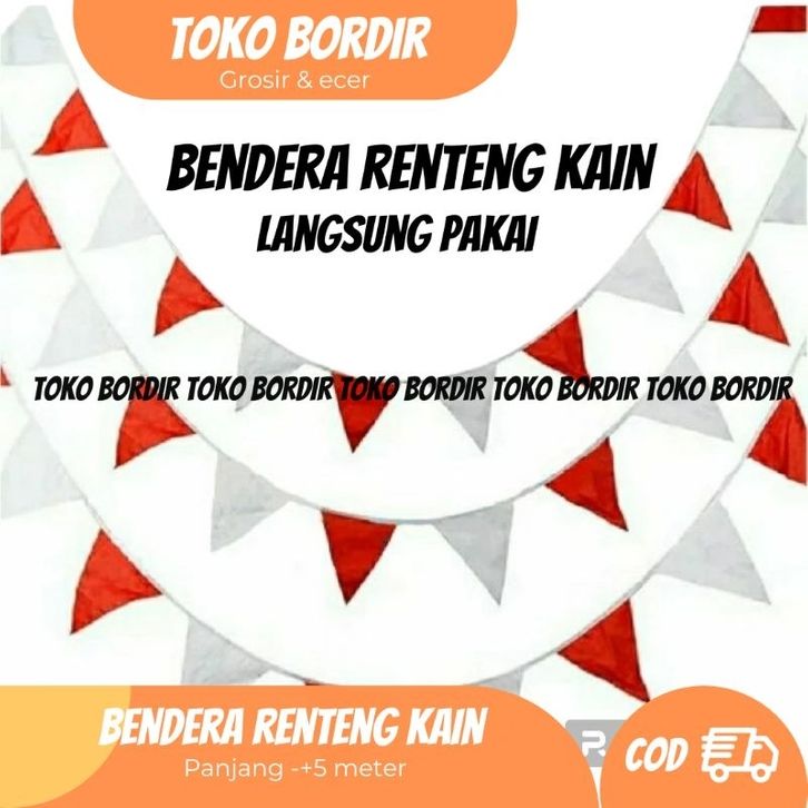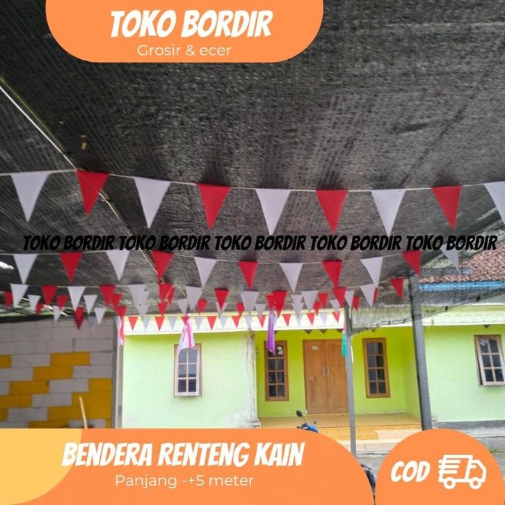 Bendera renteng kain segita merah putih dan warna 5 meter