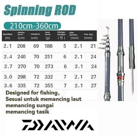 DAIWA Fishing Rod Spinning Joran Pancing Telescopic Rod Portable Rotating Gold Rod - Spinning Rod 210cm / 7kaki