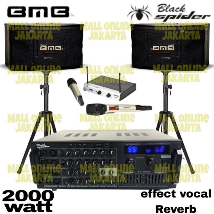 Paket karaoke bmb 10 inch 2000 watt power ampli ka3800 original sound system