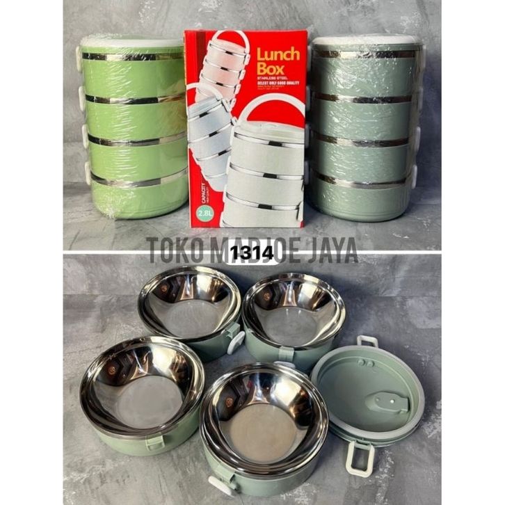TERBARU Rantang Lunch Box 4 susun Polos elegan Tempat Bekal Makanan stainless steel tahan panas warna