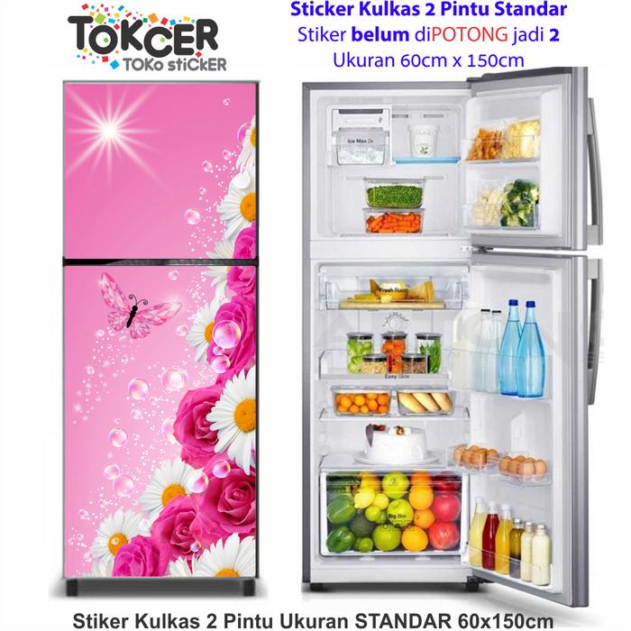 STIKER Kulkas/Stiker Kompor/Stiker Magicom/Stiker MesinCuci motif Kupu-Kupu PINK Bintang Sticker - 1 Pintu 60x120cm