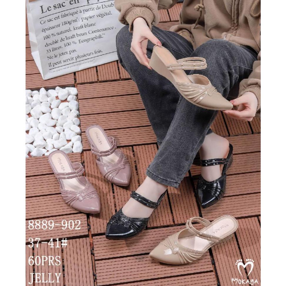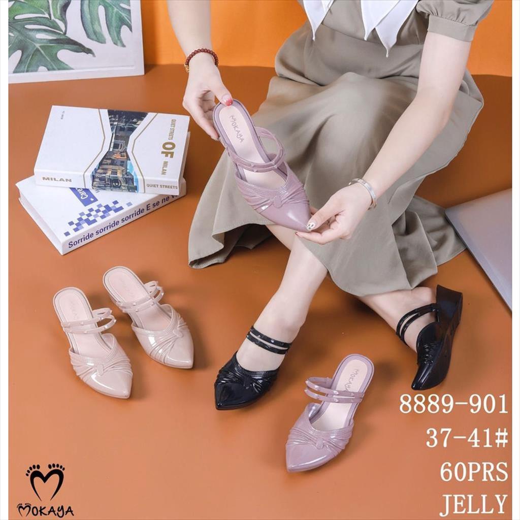 Sepatu Slop Jelly Wanita Model Kerut Pita 2 Tali Cantik (8889-901/-902)
