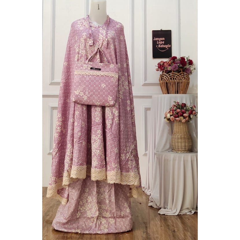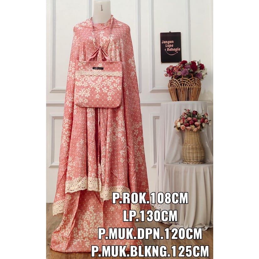 MUKENA RAYON DEWASA MOTIF BUNGA ETNIK RENDA BESAR JUMBO SUPER LEMBUT & ADEM