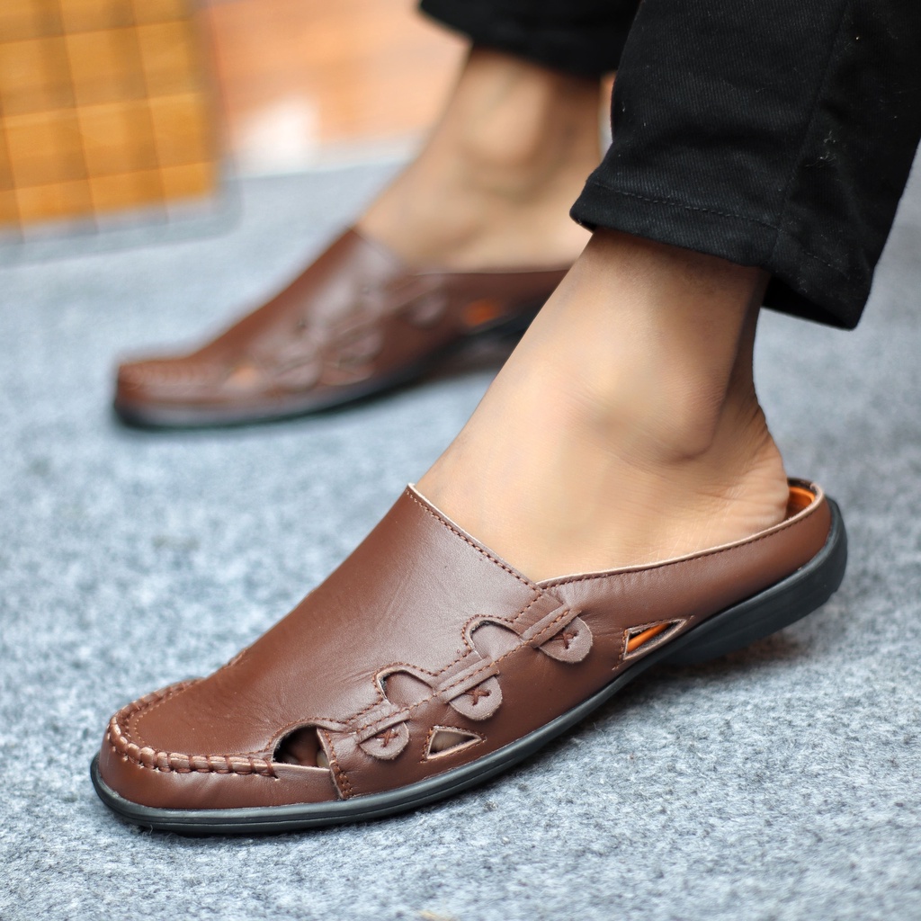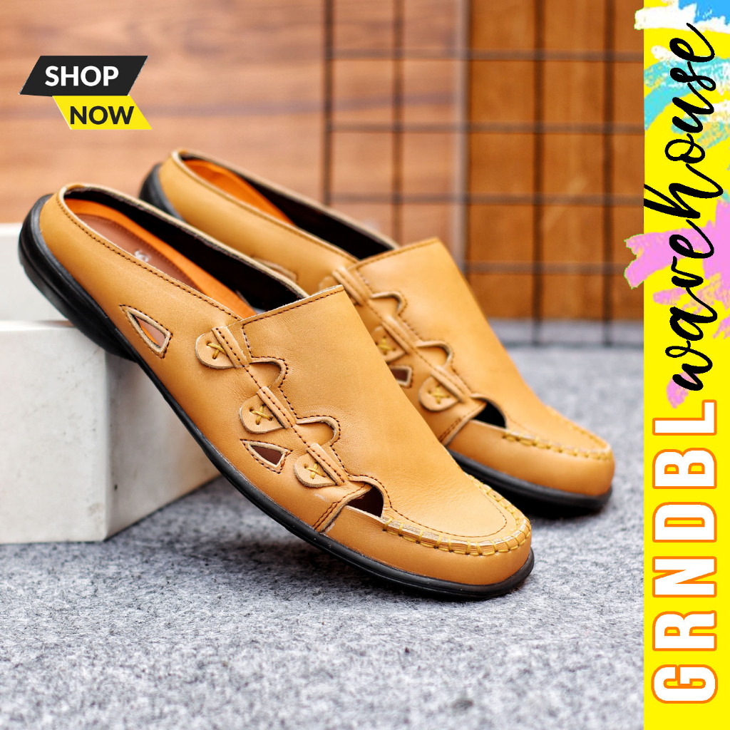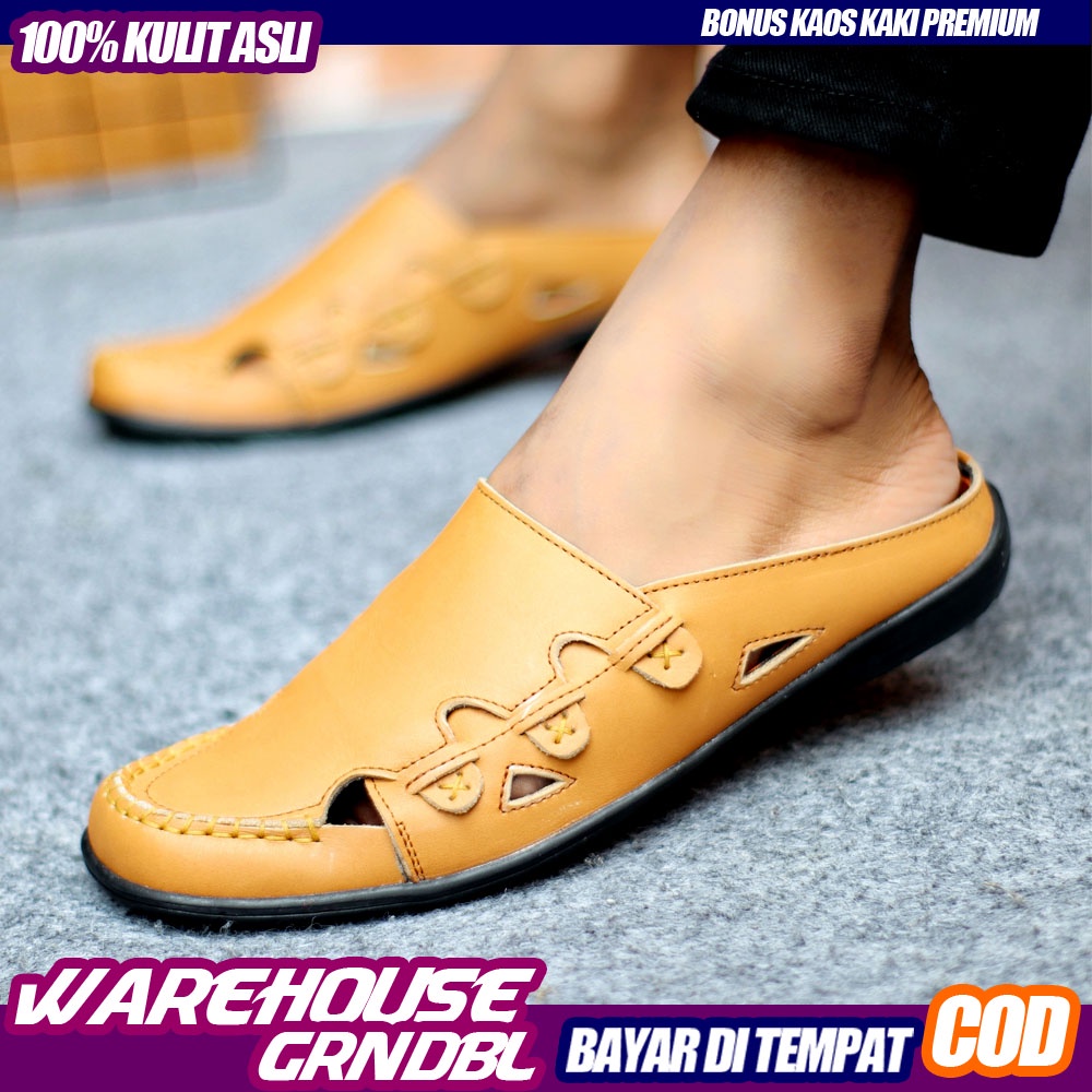 Sepatu Sendal Sandal Slop Pria Kulit Asli Sendal Selop Kulit Bustong Tutong Kerja Pria / Cowok Kulit Asli FRANGKI
