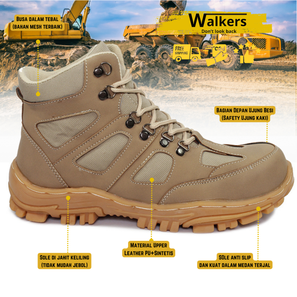 Sepatu Safety Pria Boots Proyek Ujung Besi - Septy Shoes Boot - Septi Kerja Lapangan Kulit Sintetis Tali - Sepatu Kerja