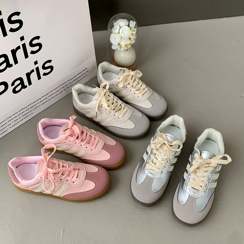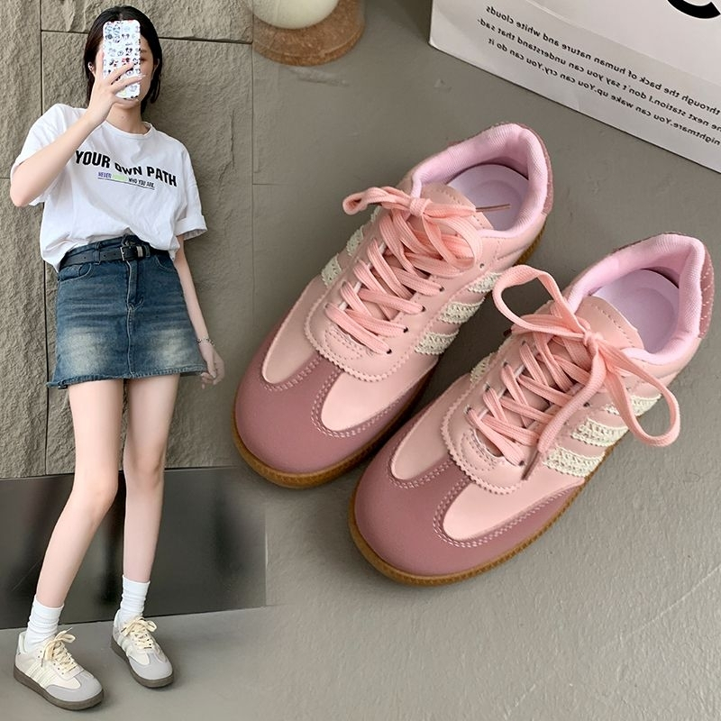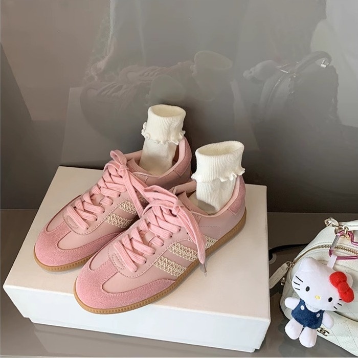 Gaya baru Sepatu Fashion Samba Wanita/Sepatu Renda Retro/Sepatu Olahraga Kasual Wanita/Sepatu Wanita Samba Pink/Sepatu