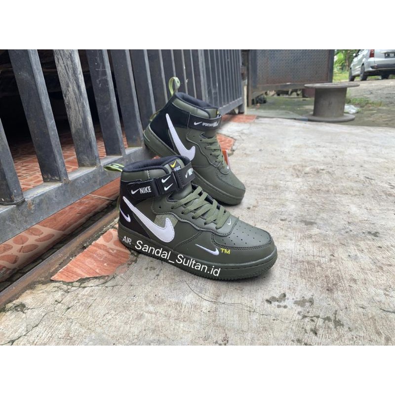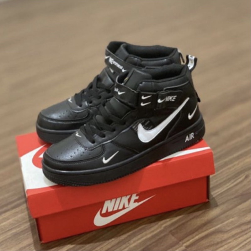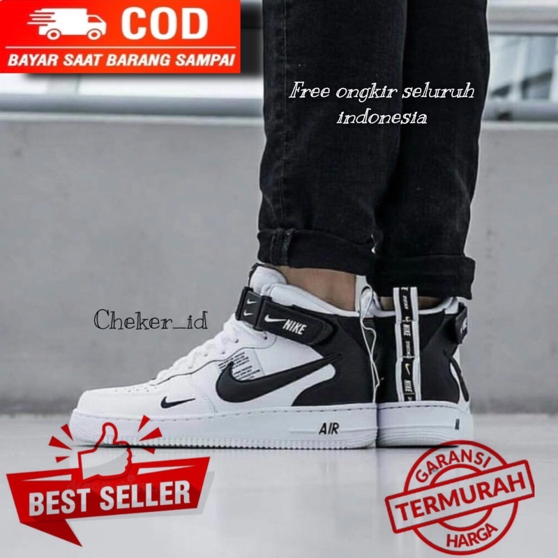() SEPATU A1R FORC3 1 ONE UTILITY TINGGI HIGH FULL WHITE PUTIH WHITE BLACK FULL BLACK HITAM ARMY SNEAKERS PRIA DAN WANIT