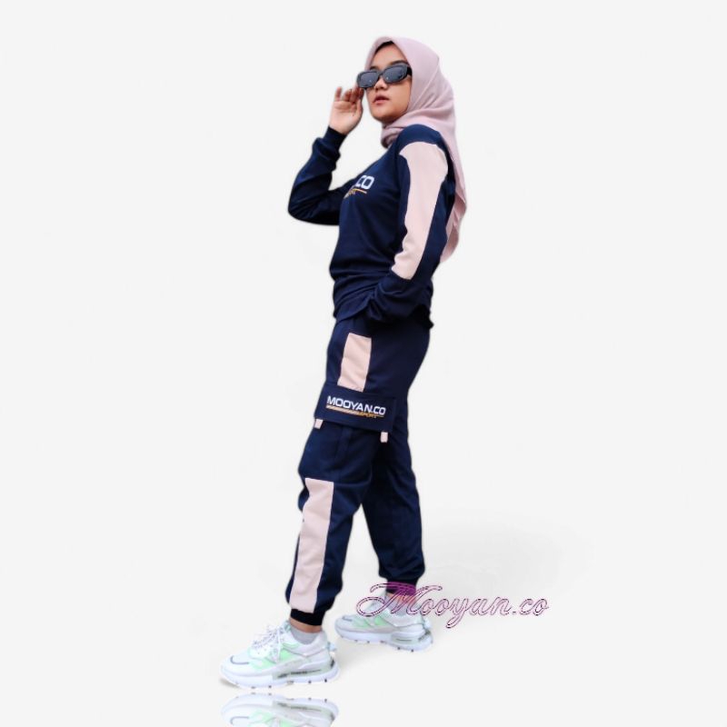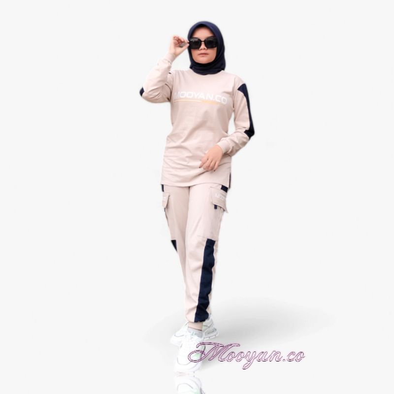 Setelan Olahraga Wanita Jumbo - Baju Olahraga Celana Cargo wanita muslimah - Mooyan Set 100kg