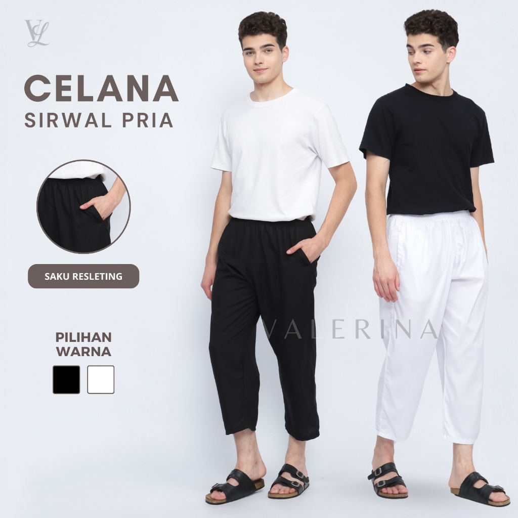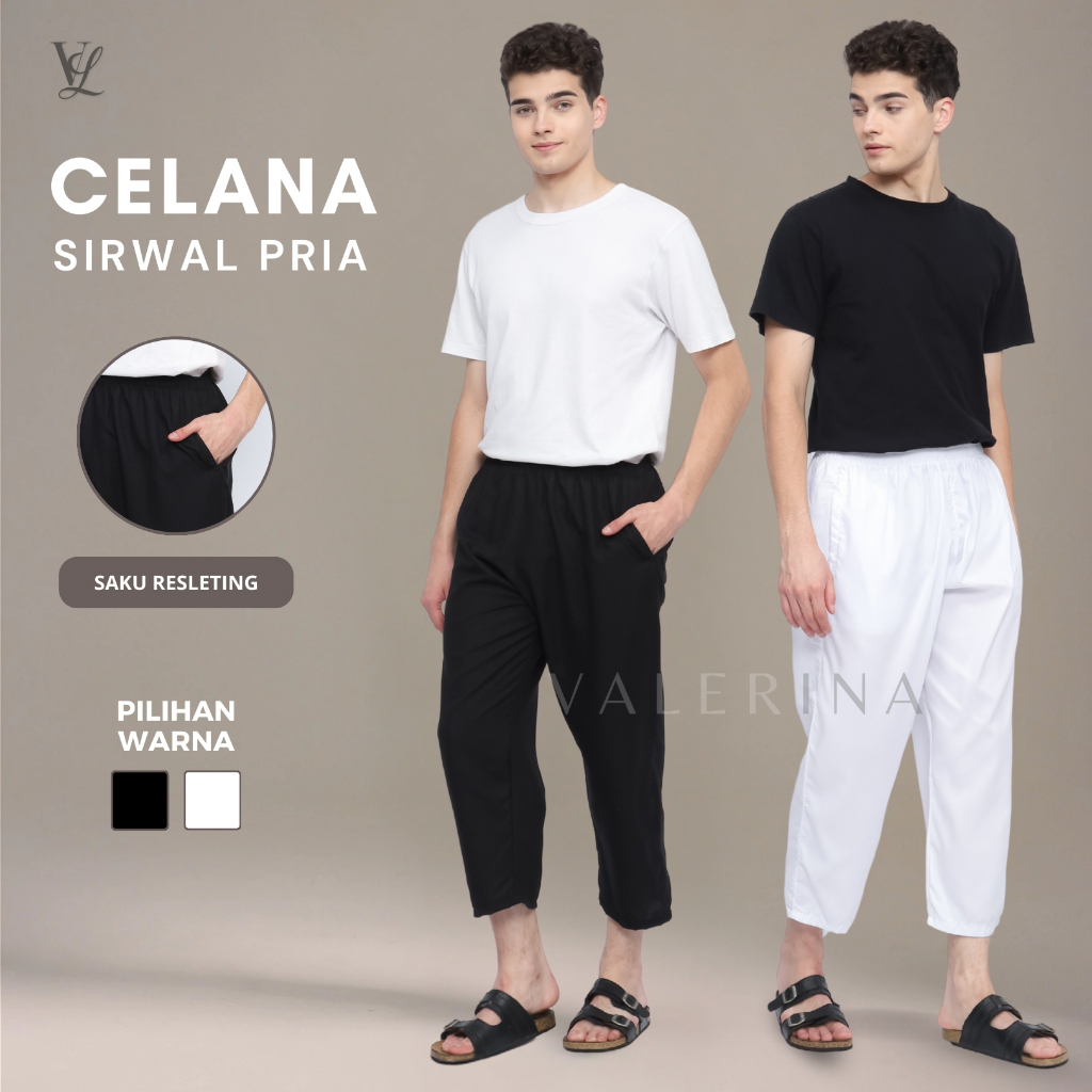 Celana Sirwal Muslim Pria Dewasa Anti Copet Celana Panjang Umroh Haji Bahan Lembut Nyaman Warna Putih dan Hitam