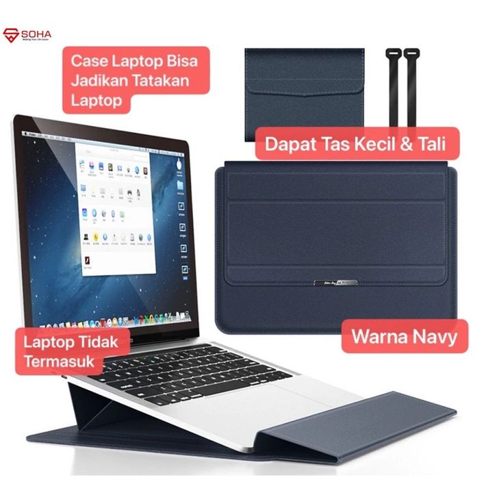 Case Murah Stand Sleeve Premium Pu Leather Kulit Macbook Air Sarung Skin Laptop Simple Designt Lc-01 Soha 13 - 14 Inch