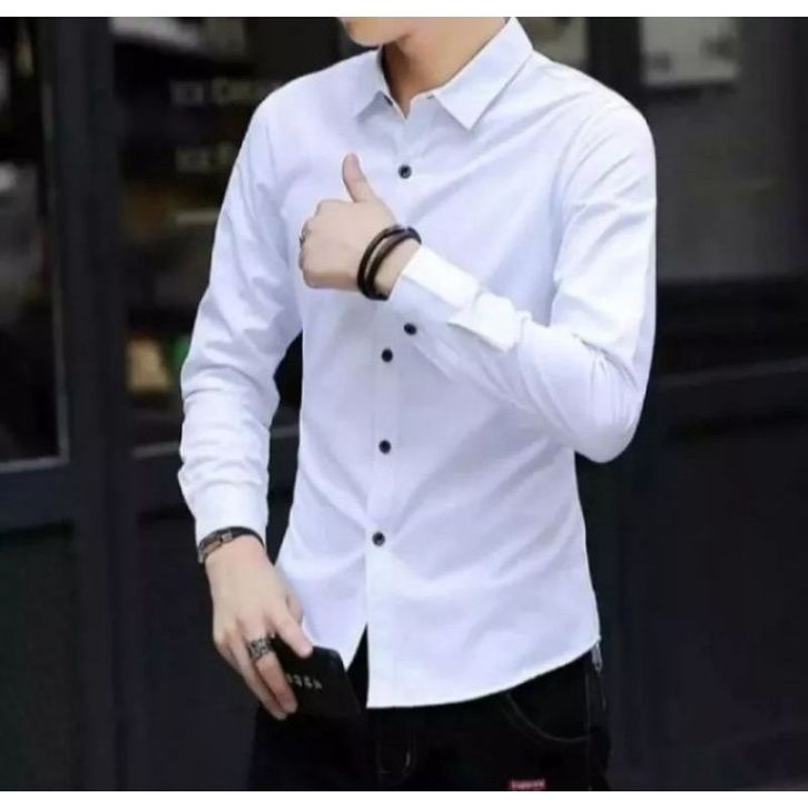 Termurah Terlaris Kemeja Polos Pria Slimfit Panjang Warna Hitam // Kemeja Pria Mens Polosan Lengan Panjang Coolman