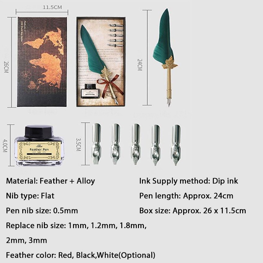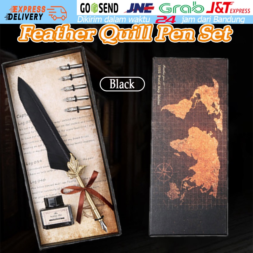 Pulpen Bulu Pena Fountain Kaligrafi Stainless Vintage Retro dengan Kotak Hadiah Ulang Tahun