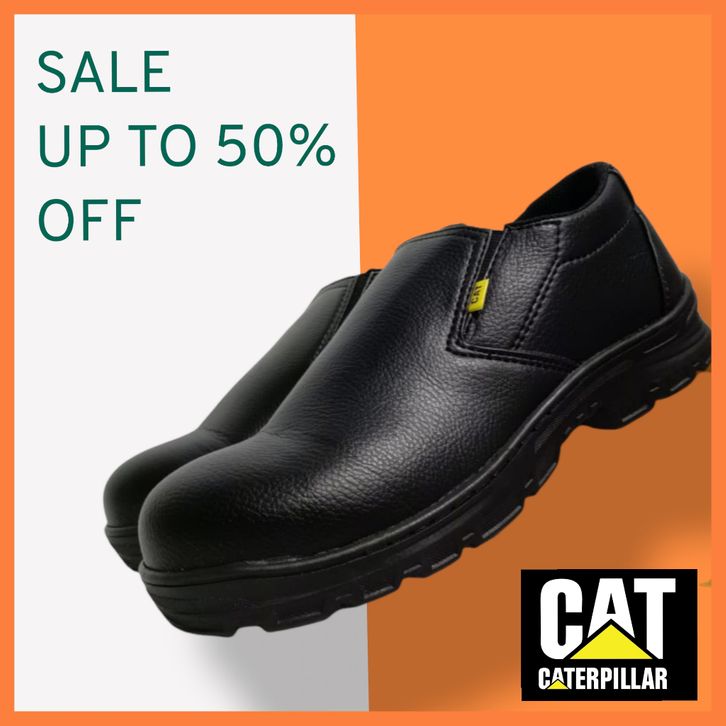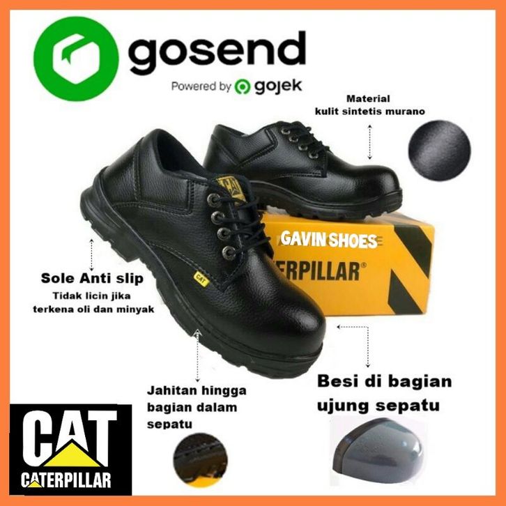 SEPATU SAFETY CATERPILLAR PRIA WANITA UJUNG BESI SEPATU KERJA PABRIK INDUSTRI KITCHEN RESTORAN SPBU ANTI SLIP